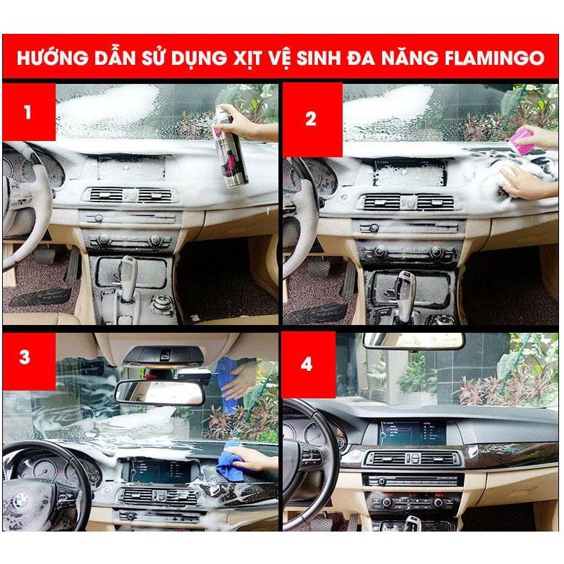 ✨Bình Xịt Bọt Vệ Sinh Ghế Da Nội Thất Ô Tô - Chai Xịt Bọt Vệ Sinh Flamingo Dung Tích 650ml CARZONE.TOP