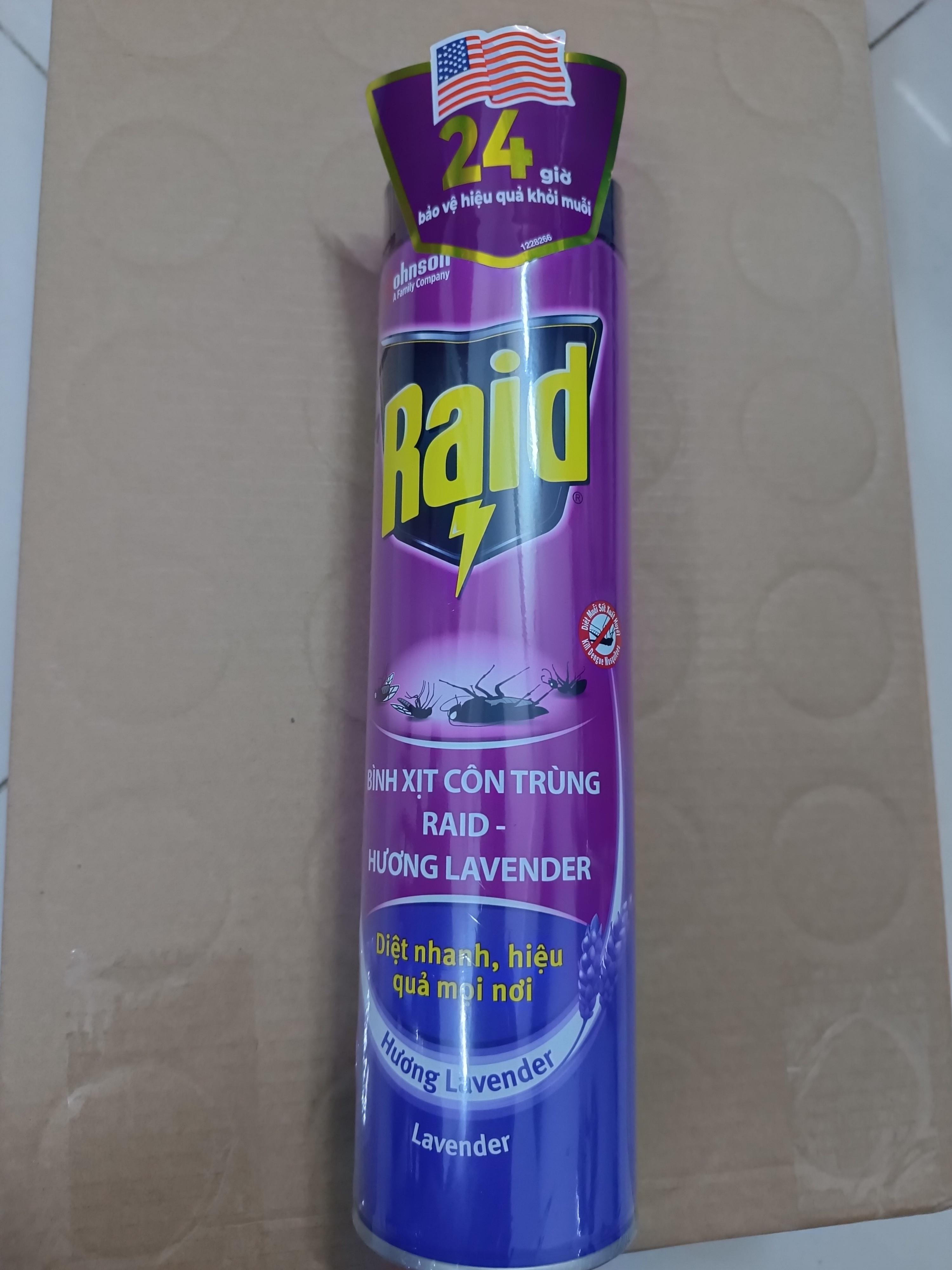 Mua tại TiktokGiúp diệt muỗi nhanh mọi nơi, mọi ngóc ngách. Bình xịt côn trùng Raid là thương hiệu bình diệt côn trùng được nhiều người ưa chuộng vì hiệu quả, an toàn khi sử dụng. Bình xịt muỗi Raid hương lavender 600ml bảo vệ gia đình bạn khỏi sốt xuất huyết và hương lavender dễ chịu Thương hiệu Raid (Việt Nam) Sản phẩm Bình xịt muỗi Mùi hương hương Lavender Dung tích 600ml Nơi sản xuất Việt Nam Sản phẩm này là tài sản cá nhân được bán bởi Nhà Bán Hàng Cá Nhân và không thuộc đối tượng phải chịu thuế GTGT. Do đó hoá đơn VAT không được cung cấp trong trường hợp này.