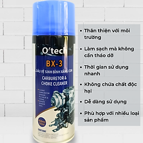 ✨Bình xịt tẩy rửa dầu nhớt, vệ sinh bình xăng con O'TECH BX-3 (450ml) carburetor & choke cleaner, carbon cleaner - Hàng Chính Hãng