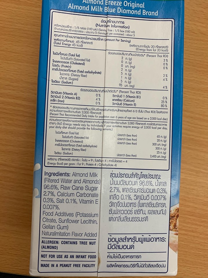 Mua tại TiktokALMOND BREZZE tự hào là sản phẩm sữa hạt hạnh nhân có SẢN LƯỢNG TIÊU THỤ SỐ 1 TẠI MỸ. Sữa hạt hạnh nhân ALMOND BREEZE (Sản phẩm của Tập đoàn BLUE DIAMOND – Mỹ) là thức uống bổ dưỡng hàng ngày tốt cho sức khỏe. Đặc biệt THÍCH HỢP VỚI KHÁCH HÀNG BỊ DỊ ỨNG VÀ KHÔNG DUNG NẠP ĐƯỢC ĐƯỜNG SỮA (Lactose); những người ăn chay; phụ nữ mang thai và cho con bú với thành phần dưỡng chất giàu Canxi và Vitamin E; không Cholesterol và không chứa các thành phần từ đậu nành và sữa. Chiết xuất hạnh nhân lên đến 96,6% ALMOND BREEZE NGUYÊN CHẤT giúp bạn cảm nhận trọn vẹn tinh túy chất lượng hạnh nhân từ Mỹ. Sữa hạt hạnh nhân ALMOND BREEZE là sản phẩm sữa hạt tốt cho sức khỏe của bạn và gia đình bạn vì: