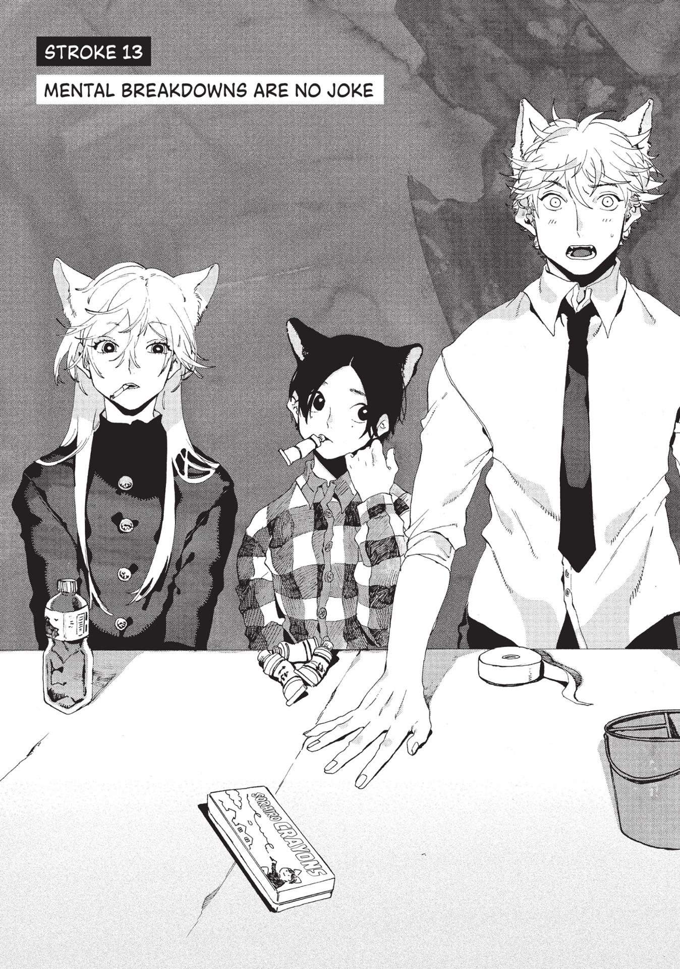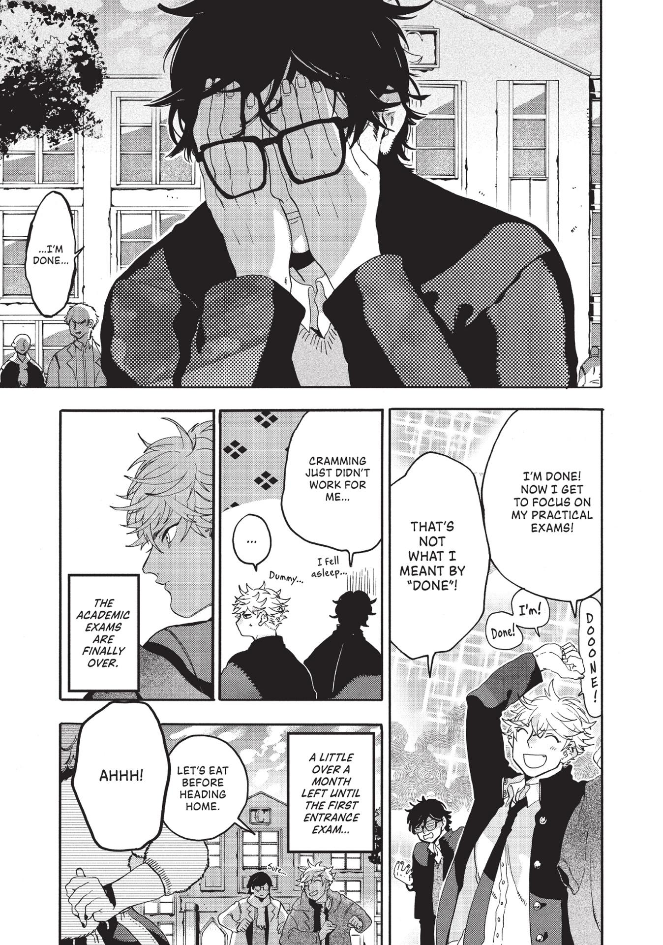 Yatora now has new materials in his tool box and a wider range of expression under his belt. But a week before the first exam, Ooba-sensei says he’s missing a crucial edge… With so much at stake, Yatora’s self-doubt brings him lower than ever before. Still, he has his fire, his resilience—and he might just get a lucky break, too.