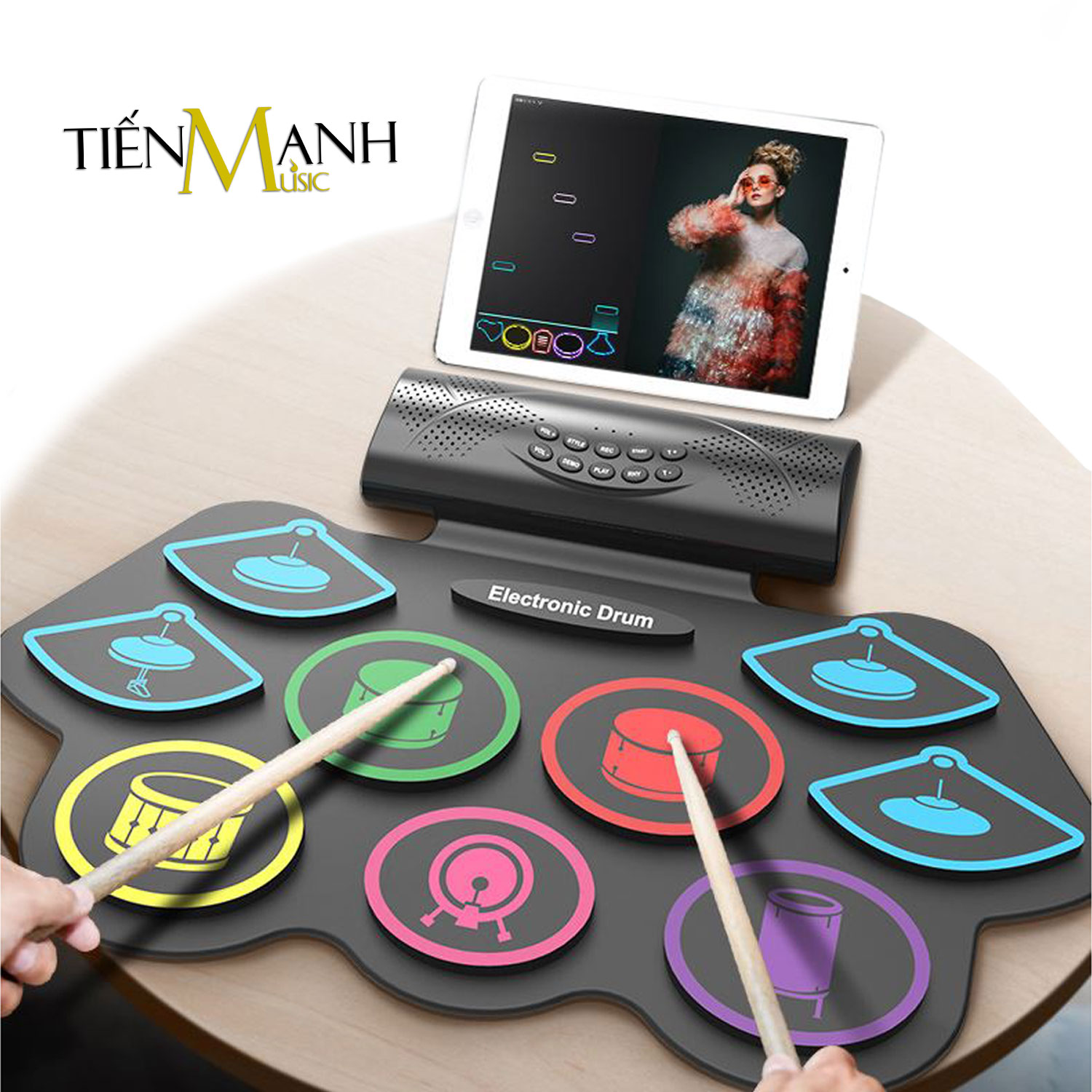 THÔNG SỐ KỸ THUẬT: - Pin sạc, hỗ trợ Bluetooth để chơi trên app (đi kèm trống, có hướng dẫn tiếng việt), và phát nhạc lên trống. - Hỗ trợ app trên ios, androi, máy