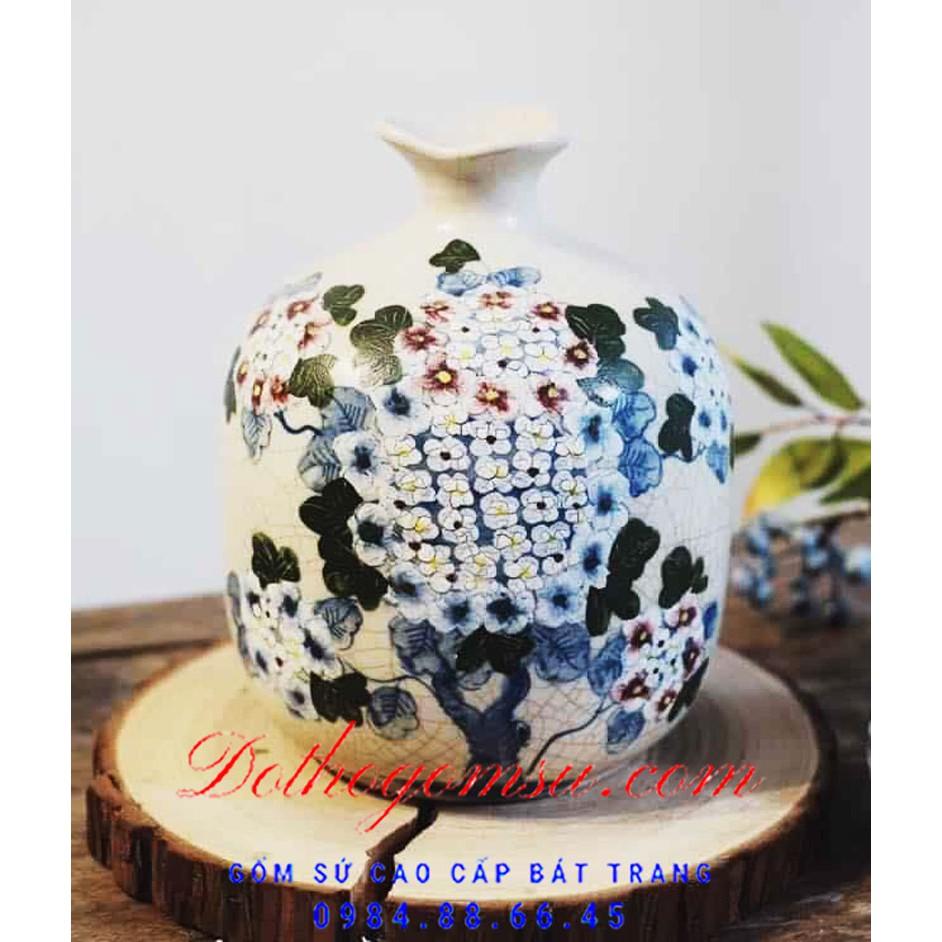 Bộ 3 bình hút tài lộc Men rạn cổ Bát Tràng Vẽ hoa tẩm tú cầu Dùng bầy , trang trí phòng khách , phòng giải trí của gia đình rất đẹp