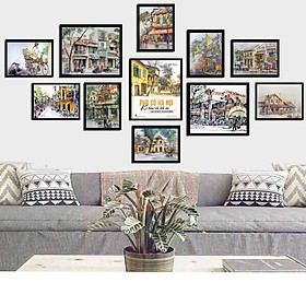 ✨Bộ 11 khung ảnh treo tường có kính Hà Nội xưa BINBIN KA262/Tặng kèm đinh 3 chân