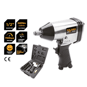 Thương hiệu Tolsen chuyên thiết kế, sản xuất, lắp ráp, cung cấp các thiết bị và dụng cụ công nghiệp dân dụng cỡ lớn và các loại dụng cụ cầm tay đa năng chuyên nghiệp nổi tiếng về chất lượng và hậu mãi tuyệt vời. Các công cụ TOLSEN tập trung vào việc chế tạo các dụng cụ cầm tay chất lượng chuyên nghiệp và các sản phẩm phần cứng liên quan. Tất cả các sản phẩm của TOLSEN đều được kiểm soát chặt chẽ ở mọi bước trong quá trình thiết kế, sản xuất, đóng gói và kiểm soát chất lượng. Các công cụ TOLSEN tin rằng các công cụ chất lượng đề cập đến khả năng sử dụng, hiệu quả và hiệu suất Tolsen có phạm vi sản phẩm khá rộng rãi với trên 2000 sản phẩm bao gồm đủ dụng cụ cầm tay, dụng cụ cơ khí, dụng cụ buộc chặt, dụng cụ cắt, dụng cụ đo, dụng cụ vẽ, vật phẩm PPE, phụ kiện dụng cụ điện, túi và dụng cụ cách điện, Thông số kĩ thuật -Mã sản phẩm: 73382 -Thương hiệu: TOLSEN -Xuất xứ: Trung Quốc -Loại máy Máy siết bu lông khí nén -Tốc độ không tải 7.000 vòng/phút -Đầu khẩu 12,7mm -Lực siết tối đa 340Nm -Mức tiêu thụ khí 210 lít/phút -Trọng lượng sản phẩm 2,2kg
