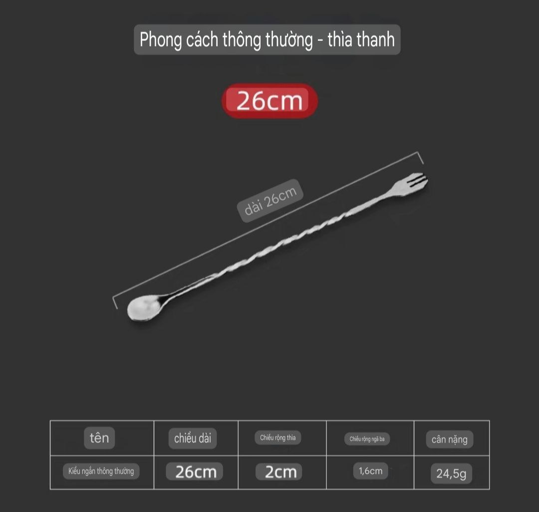 Thìa pha chế bar spoon 26cm & 32cm - Khuấy chuẩn, pha chuyên nghiệp