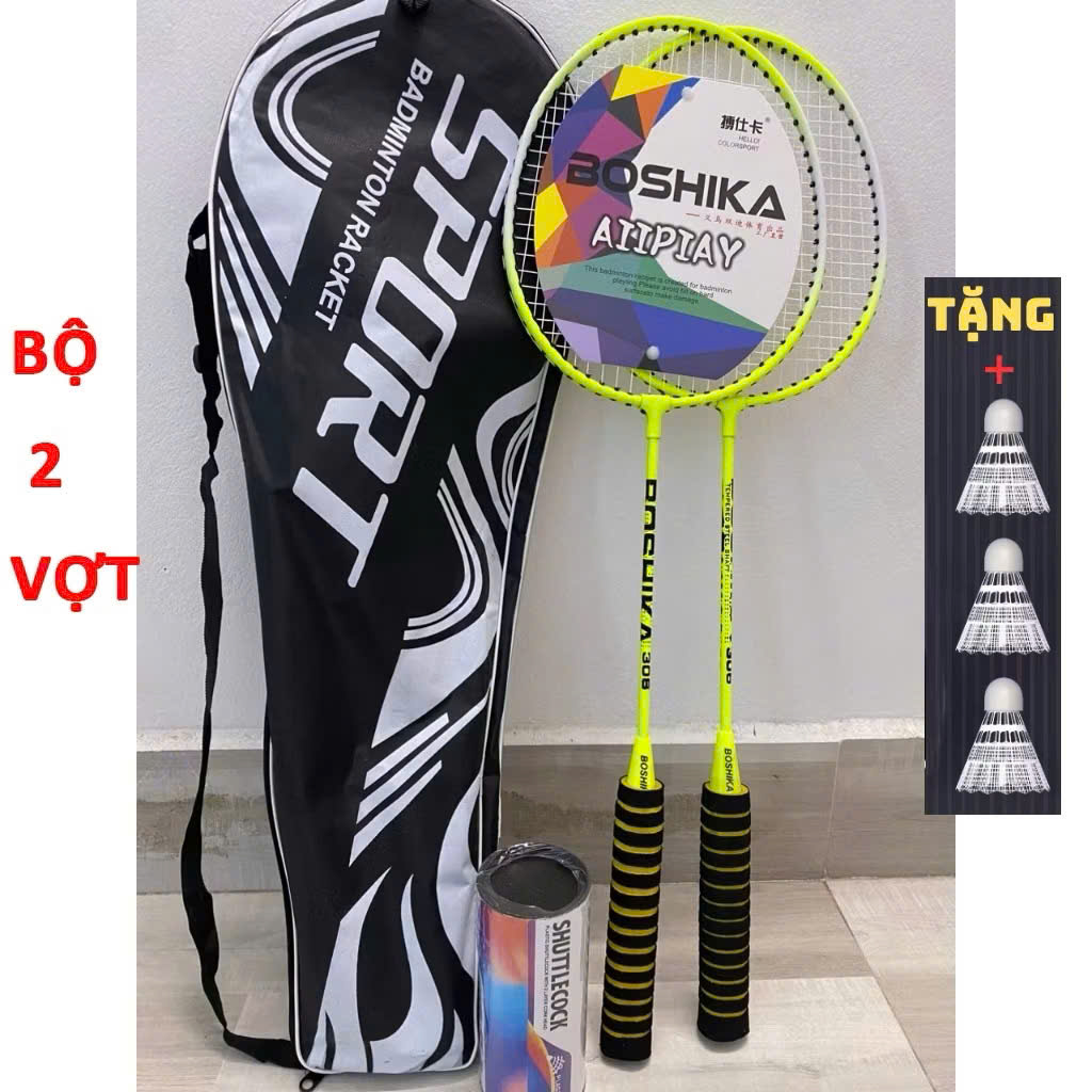 Bộ 2 Vợt Cầu Lông Tay Cầm Đệm Mút Tặng Kèm 03 Quả Cầu Hàng Chính Hãng - Đàn Hồi Tốt, Siêu Cứng, Siêu Bền