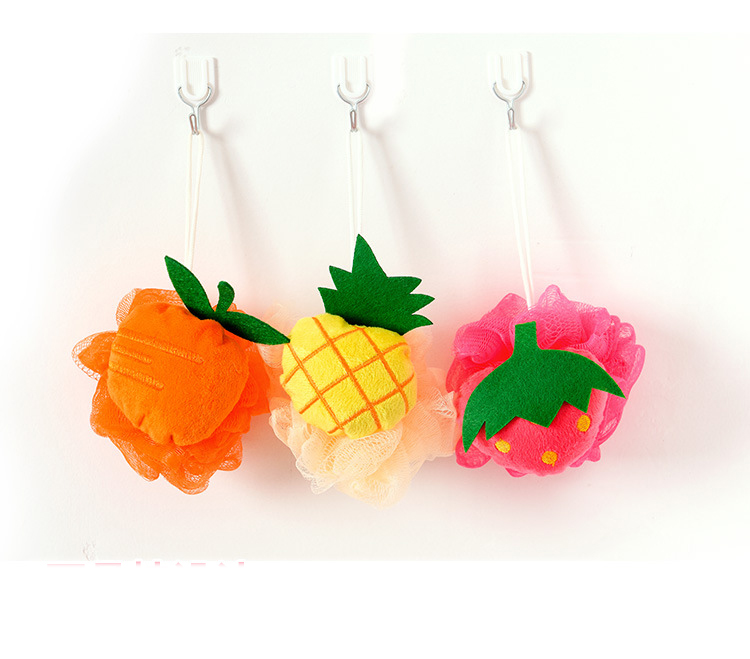 - Bông tắm hình trái cây tiện lợi khi sử dụng, có thể dùng cho cả người lớn và trẻ em. - Với kiểu dáng hình quả bóng rất dễ cầm, nên giúp cho việc