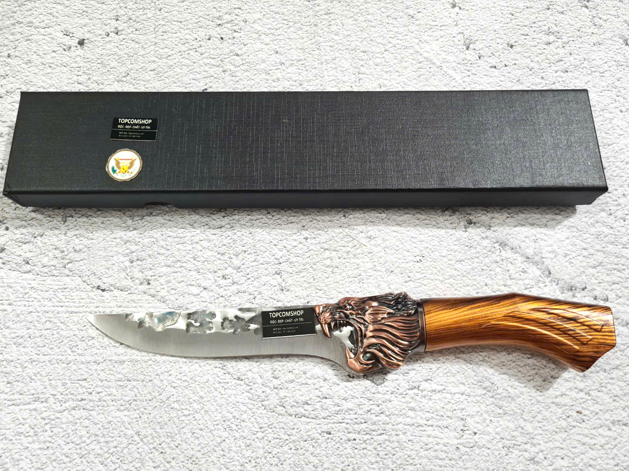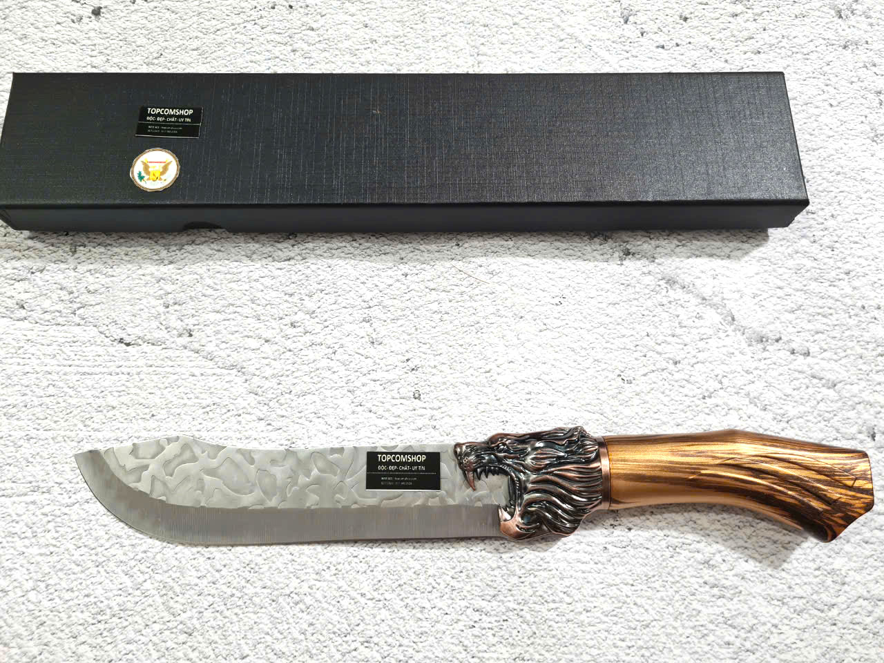 D SỐ 1 : TỔNG DÀI : 29cm, LƯỠI: 14cm,RỘNG : 4.5cm, dày: 3mm, NẶNG : 1.5 lạng, CHẤT liệu lưỡi: 4Cr13MOV (thép 4 crom 13 molypden vanadi).Chất liệu CÁN: nhựa abs xịn . khâu đầu rồng và chuôi bằng thép 4cr13