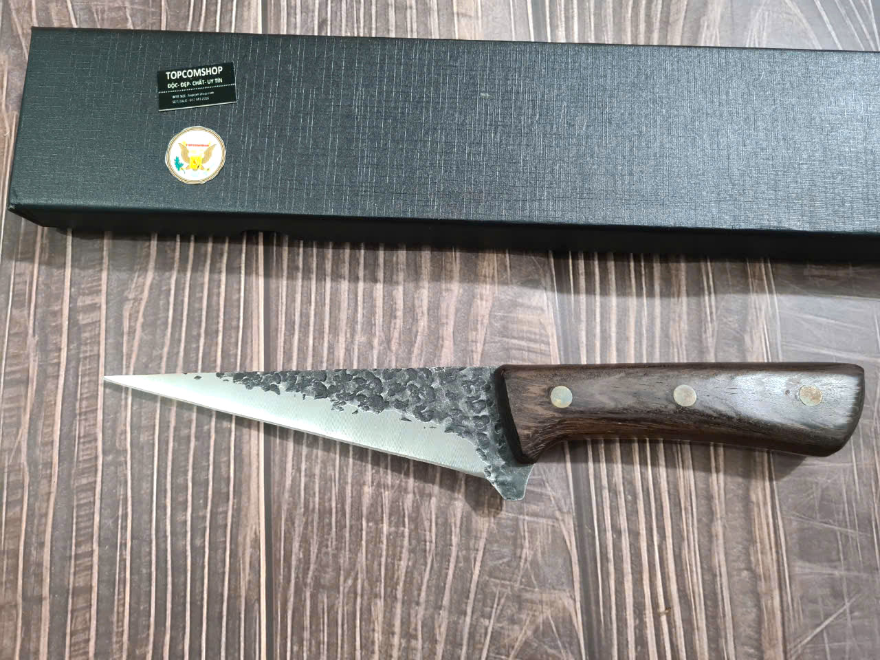 D SỐ 2 : TỔNG DÀI : 30cm, LƯỠI: 17.5cm,RỘNG : 2.9cm, dày: 2.5mm, CHẤT liệu lưỡi: 5Cr15MOV (thép 5 crom 15 molypden vanadi).Chất liệu CÁN: gỗ Cánh gà,.NẶNG : 2 lạng