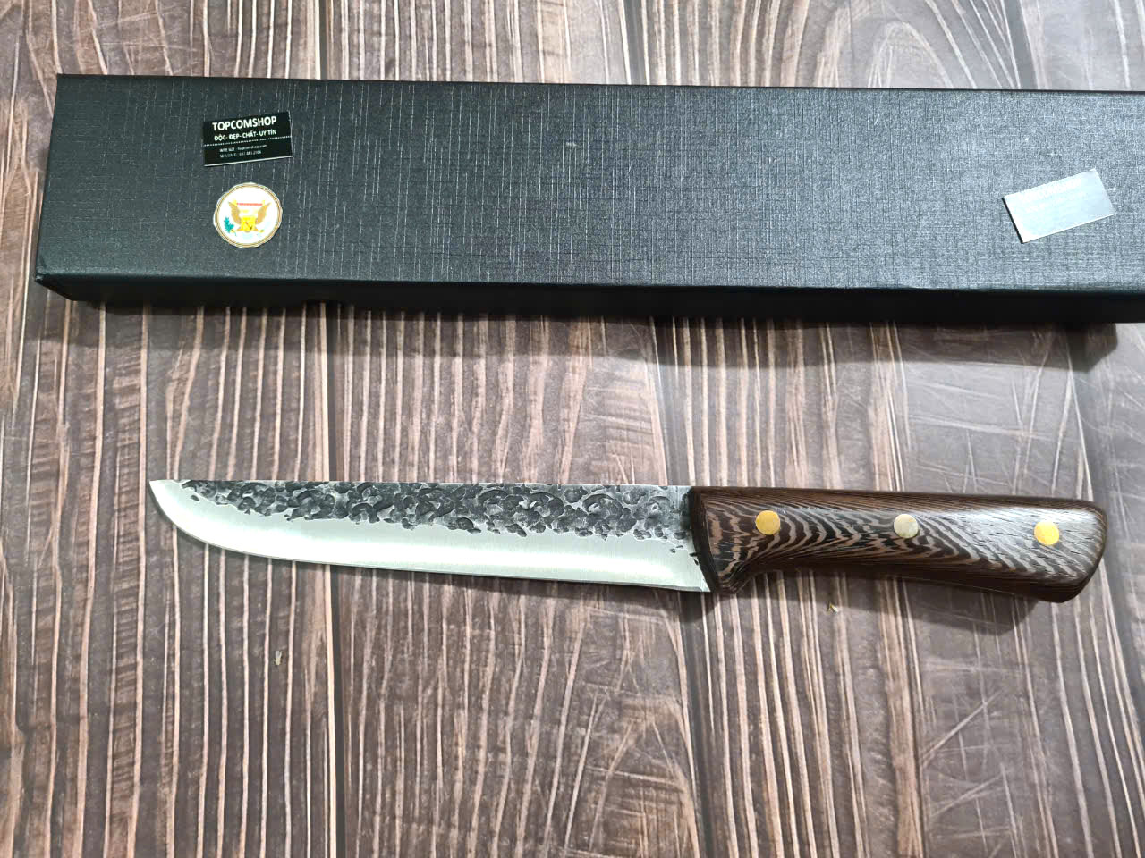 D SỐ 1 : TỔNG DÀI : 27cm, LƯỠI: 14cm,RỘNG : 2.3cm, dày: 2.5mm, CHẤT liệu lưỡi: 5Cr15MOV (thép 5 crom 15 molypden vanadi).Chất liệu CÁN: gỗ Cánh gà,.NẶNG : 1.5 lạng