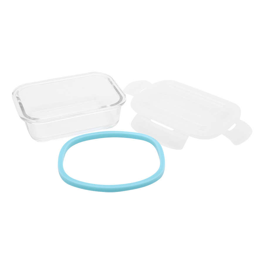 Bộ 3 hộp đựng cơm thủy tinh COBA'COOK chịu nhiệt 3 hộp chữ nhật 370ml và 1 túi simili - CCL33BS-1 - Chất liệu : Thủy tinh chịu nhiệt,nắp nhựa PP - Màu sắc :
