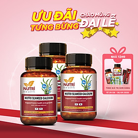 Mua tại TiktokTHỰC PHẨM BẢO VỆ SỨC KHỎE COMBO 3 HỘP NUTRI SEAWEED CALCIUM 60 VIÊN Canxi hữu cơ NUTRI SEAWEED CALCIUM Bổ sung canxi hữu cơ chiết xuất từ tảo biển. Sản xuất tại New Zealand NUTRI SEAWEED CALCIUM là nguồn cung cấp canxi hữu cơ từ tảo biển, kết hợp vitamin K2 và D3 giúp cơ thể hấp thu canxi nhanh hơn, hỗ trợ tăng chiều cao tối ưu và hỗ trợ xương chắc khoẻ. THÀNH PHẦN CANXI HỮU CƠ NUTRI SEAWEED CALCIUM : Tính trong 1 viên