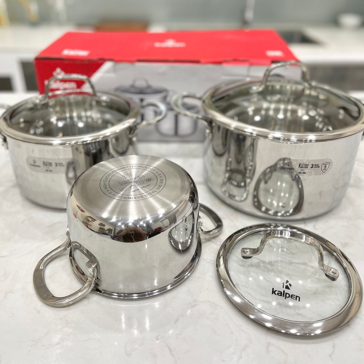 ✨Bộ 3 Nồi Inox 3 Lớp Liền Khối Kalpen Kazler KZ1 Size 16,20,24cm Chuẩn Đức