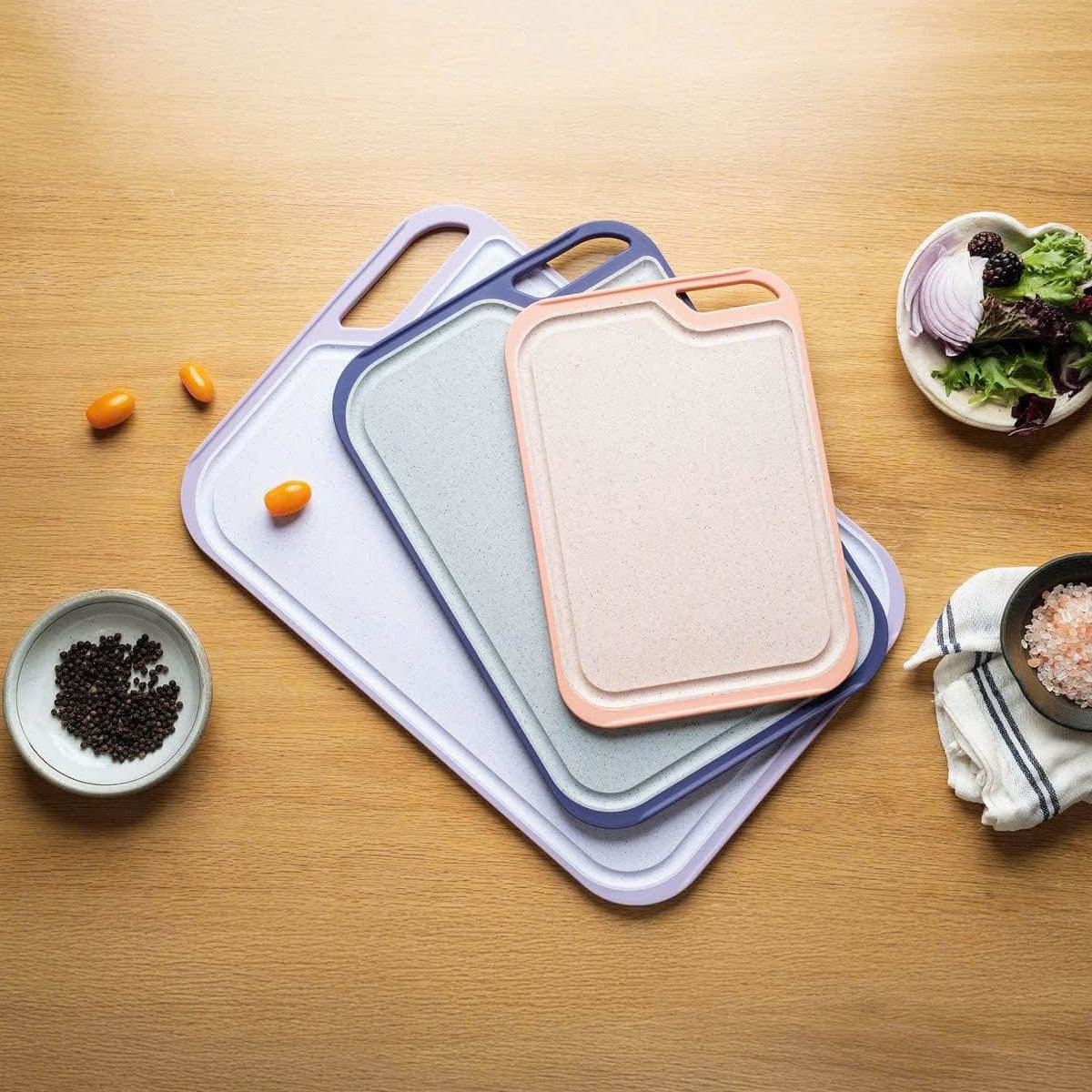 Bộ 3 thớt kháng khuẩn nhựa lúa mạch, nhựa PP dễ dàng vệ sinh, lau chùi