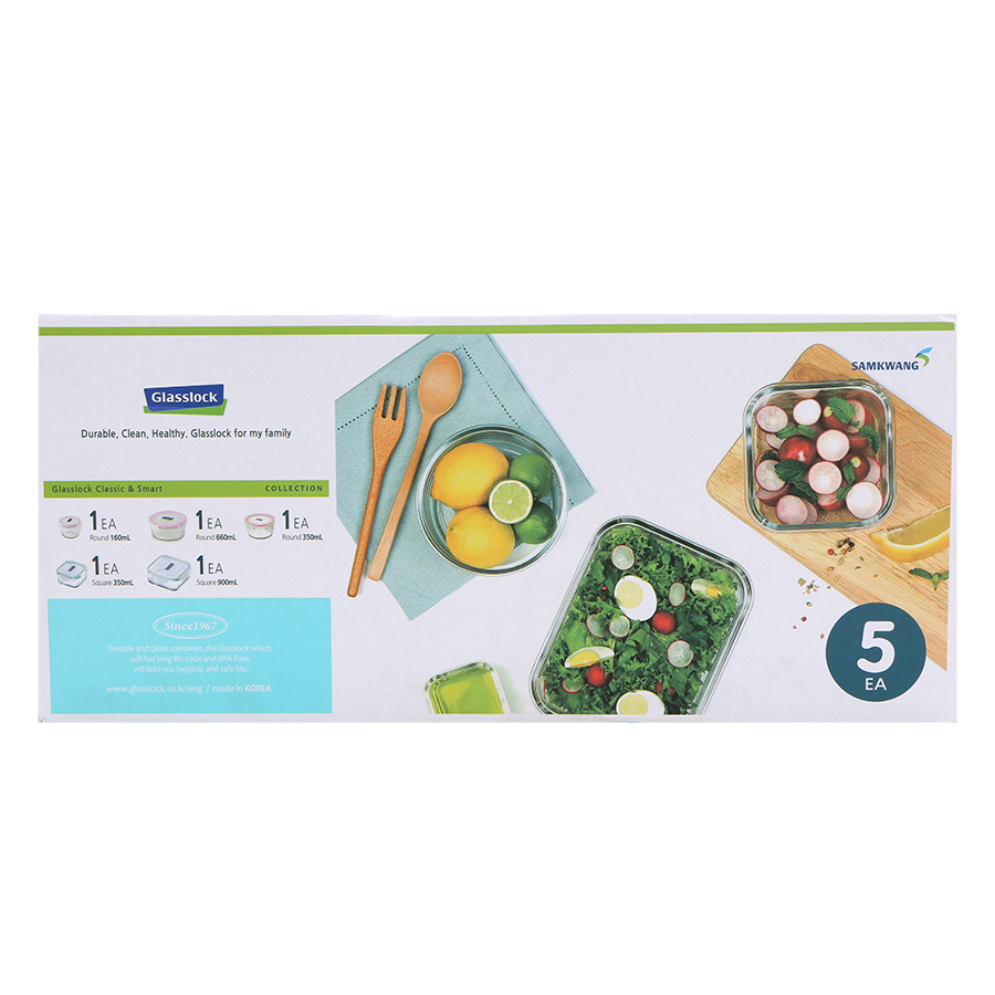 Bộ 5 hộp thủy tinh chịu lực đựng thực phẩm Glasslock 472 Tempered Glass Food Container