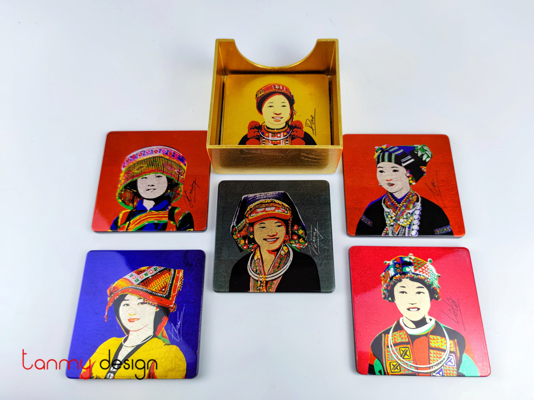 ✨BỘ 6 LÓT CỐC SƠN MÀI HÌNH CÁC CÔ GÁI DÂN TỘC.