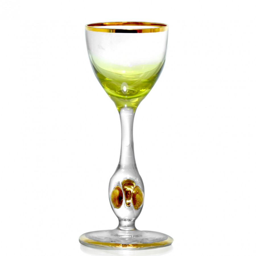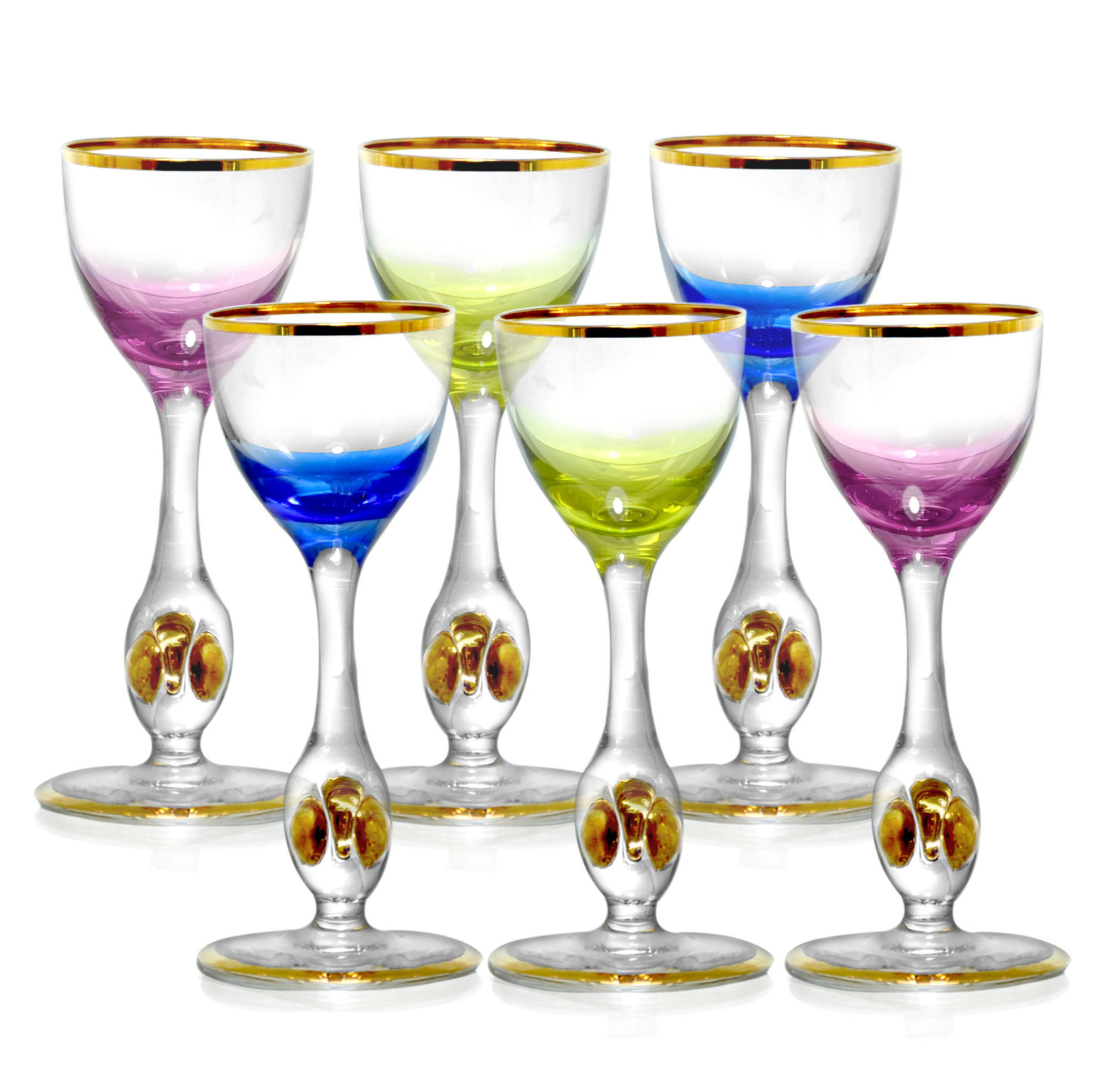 ✨Bộ 6 ly rượu mạnh pha lê 6 màu viền vàng 24k 050 ml Tiệp Khắc