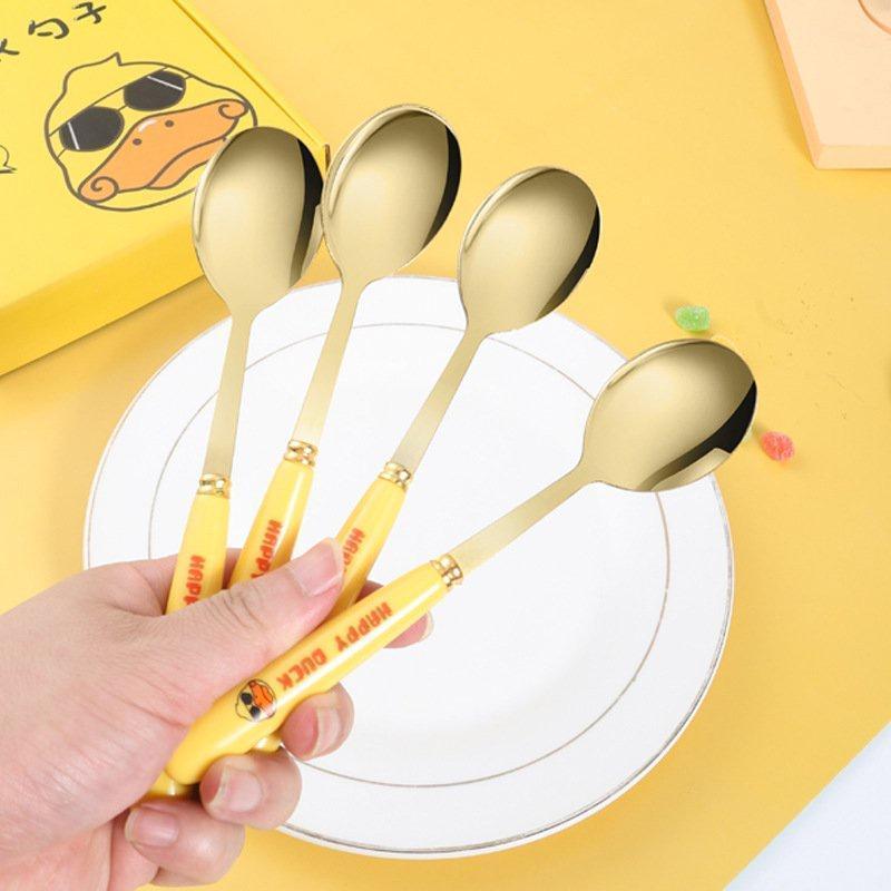 SET 6 MUỖNG THÌA VÀNG HÌNH CON VỊT VÀNG INOX SIÊU CUTE