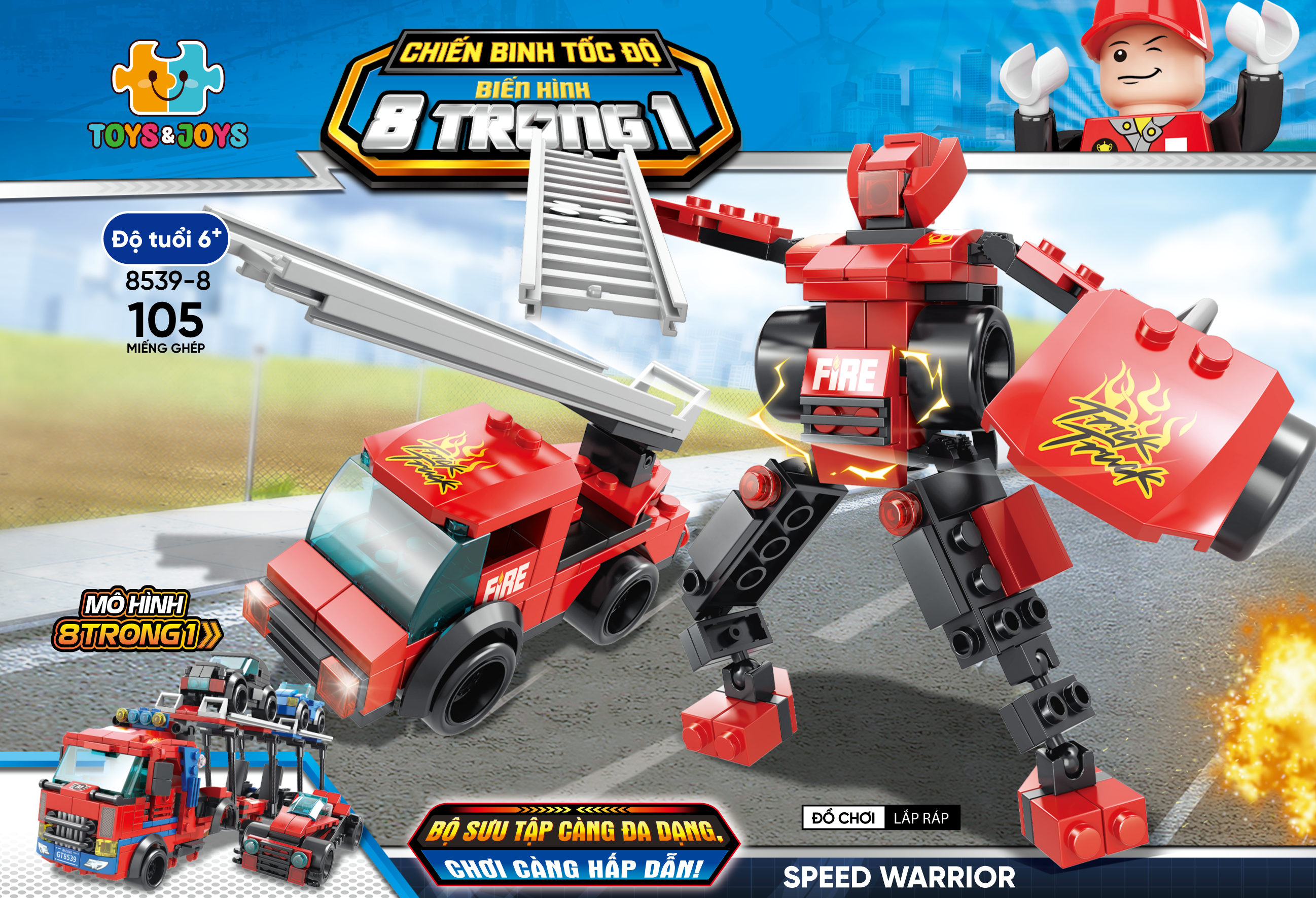 Bộ 8 Đồ Chơi Lắp Ráp Chiến Binh Tốc Độ Biến Hình 8 Trong 1 - Speed Warrior - Toys&Joys 8539 (886 Mảnh Ghép) - Chiến binh tốc độ biến hình 8 trong 1 –
