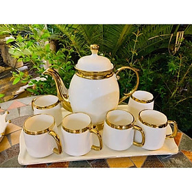 Bộ ấm chén Bát Tràng men trắng viền vàng kim dáng phú quý kèm hộp làm quà tặng sang trọng Với chất men trắng tinh khôi không tỳ vết, từ chén, đĩa, ấm, nắp
