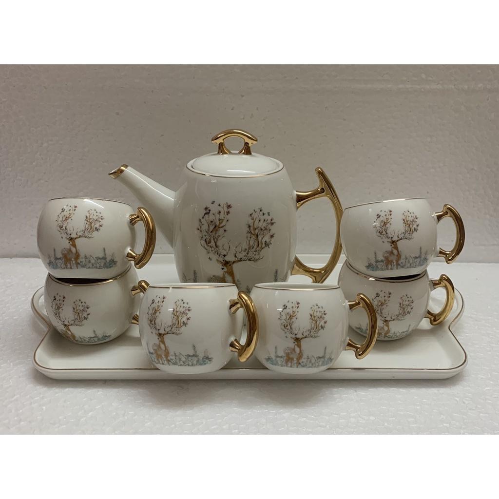 ✨Bộ ấm chén kèm khay sứ pha trà trắng họa tiết hươu rừng
