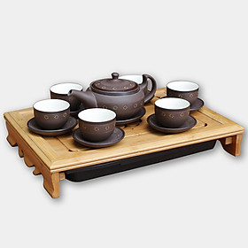 Bộ ấm trà gốm đắp tay khay chữ nhật 29 x 19cm - chuẩn loại 1 Bát Tràng + Chất liệu đất tử sa cao cấp + Sản xuất tại Bát Tràng + Bộ gồm