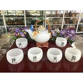 Bộ ấm trà bạch ngọc tự nhiên, món quà tặng Sếp, tặng tân gia vô cùng ý nghĩa và đẳng cấp.