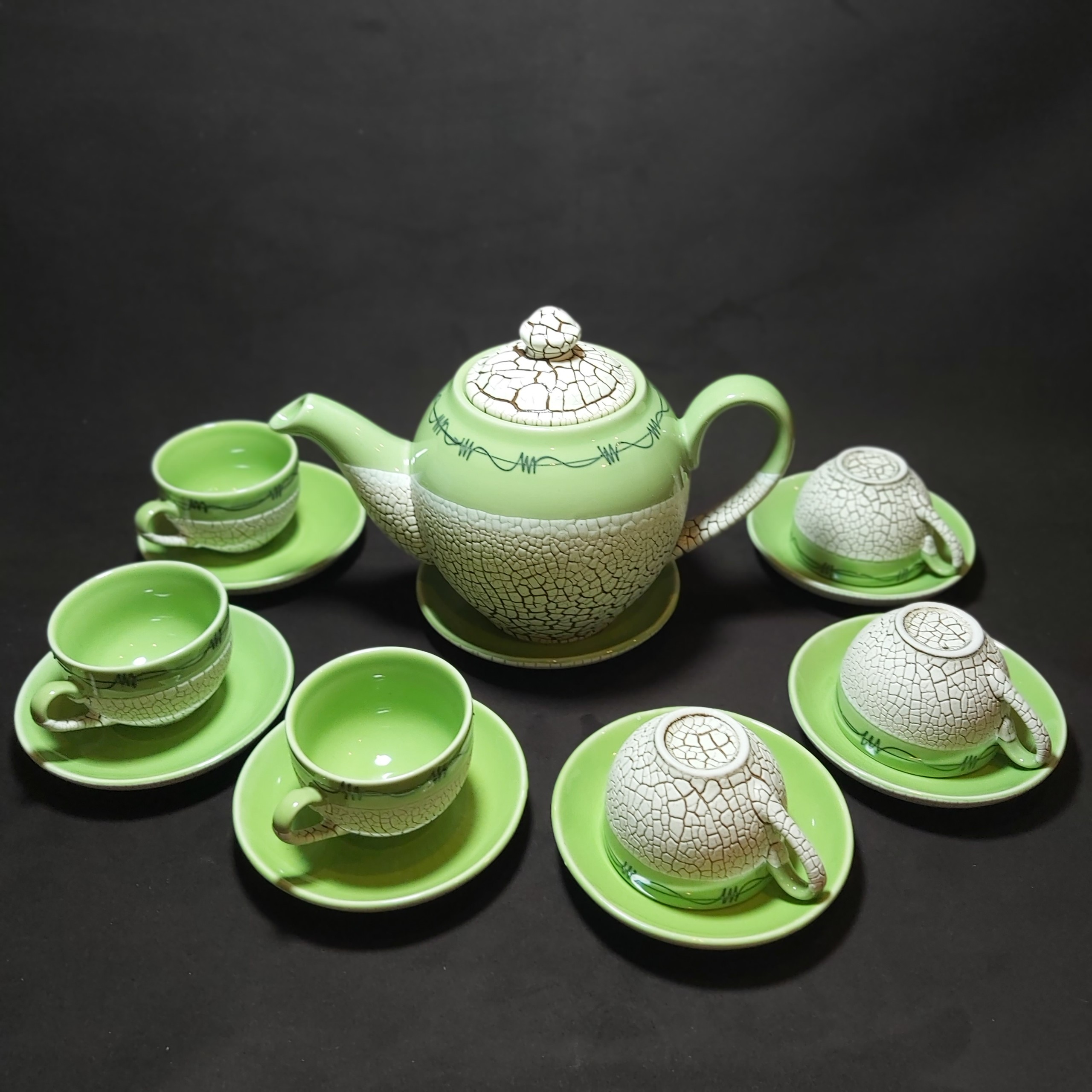 - Bộ ấm chén men rạn chân chim - Gốm sứ Bát Tràng - Dung tích 350ml - 1 ấm 6 chén 7 đĩa kê - Giá 350k