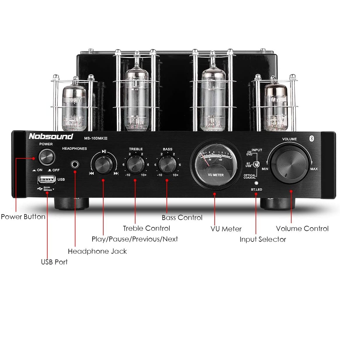 NOBSOUND MS-10D MKIII tube amplifier, Hỗ Trợ USB đĩa để chơi âm nhạc & Bluetooth không dây kết nối thiết bị âm thanh để chơi nhạc, âm thanh ấm rõ ràng và tươi sáng âm thanh tuyệt vời trải nghiệm mới.