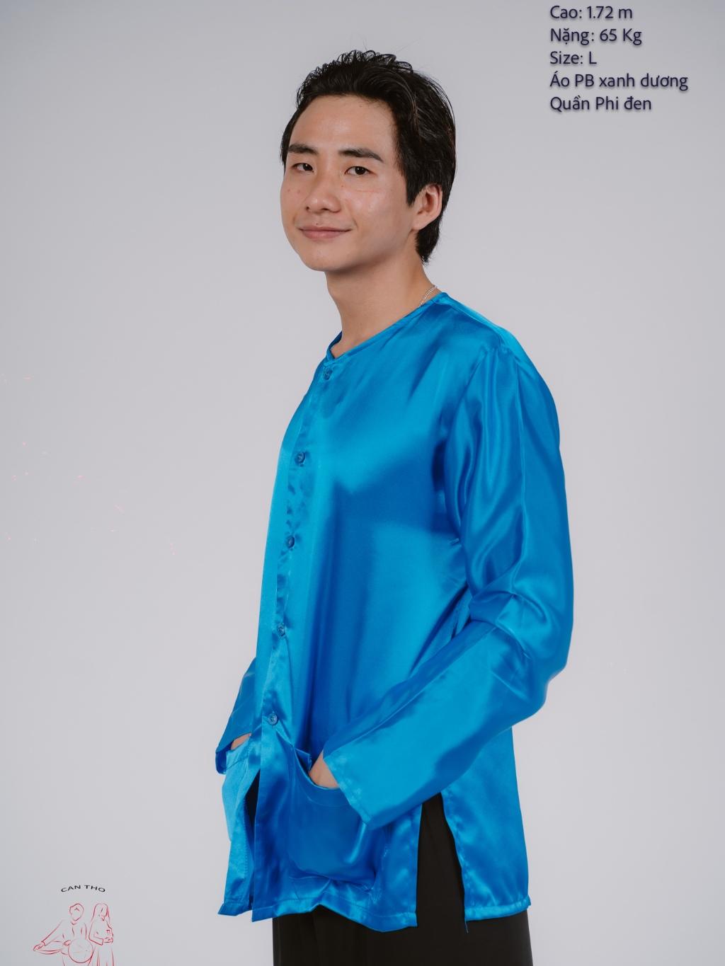 ✨Bộ áo bà ba nam phối áo phi xanh dương + Quần phi đen - Có bộ bà ba Bigsize
