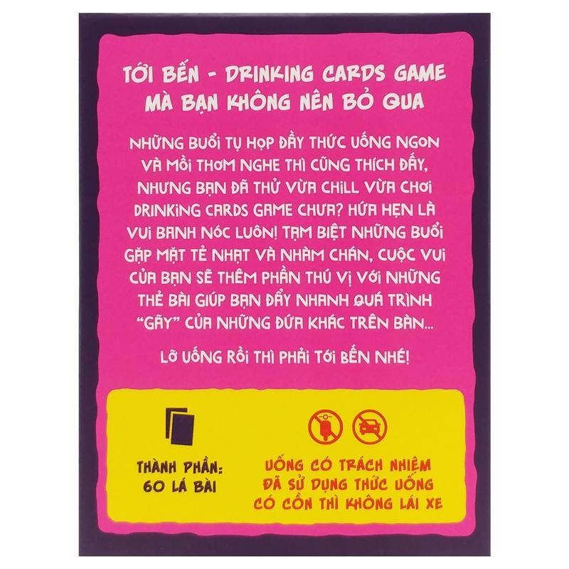 Mua tại TiktokGiới thiệu Bộ Bài Drinking Game - Tới Bến Bộ Bài Drinking Game - Tới Bến Những buổi ăn nhậu đầy thức uống ngon và mồi thơm nghe thì cũng thích đấy, nhưng bạn đã thử vừa chill vừa chơi Drinking Cards game chưa? Hứa hẹn là vui banh nóc luôn! Tạm biệt những buổi gặp mặt tẻ nhạt và nhàm chán, cuộc vui của bạn sẽ thêm phần thú vị với hàng loạt thẻ bài siêu bựa sẽ giúp bạn đẩy nhanh quá trình “gãy” của những đứa khác trên bàn... Lỡ uống rồi thì phải Tới Bến nhé! Lưu ý: Uống có trách nhiệm - đã uống rượu bia thì không lái xe. Thành phần: 54 thẻ bài bình thường 6 thẻ bài bí mật 1 luật chơi
