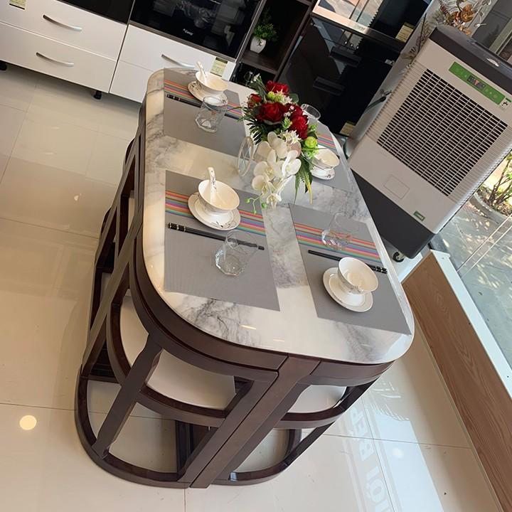 Bàn ăn thông minh gấp gọn mặt đá 6 ghế cao cấp phong cách bắc âu - tiết kiệm diện tích cho nhà nhỏ