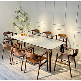 Được sản xuất 100% từ chất liệu gỗ tự nhiên. Mặt bàn đá ceramic . Đây là dòng bàn ăn được ưa chuộng do thiết kế sang trọng, đẹp và vô cùng tinh tế. Bên