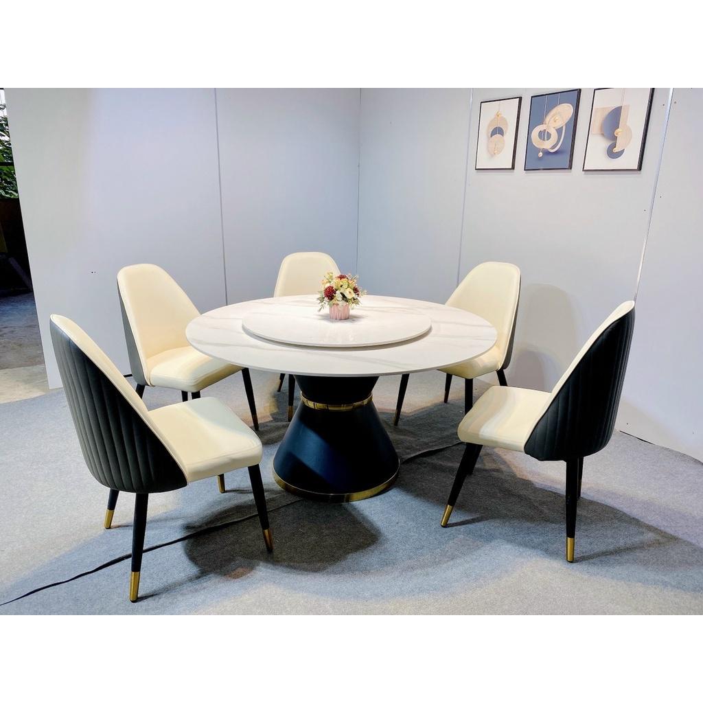 BỘ BÀN ĂN THÔNG MINH MẶT ĐÁ CERAMIC TRÒN XOAY KÈM GHẾ MOCA-NHẬP KHẨU