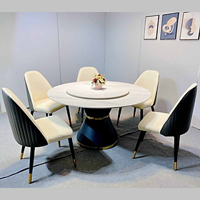 Bộ bàn ăn thông minh mặt đá phiến tròn mâm xoay kết hợp ghế Moca