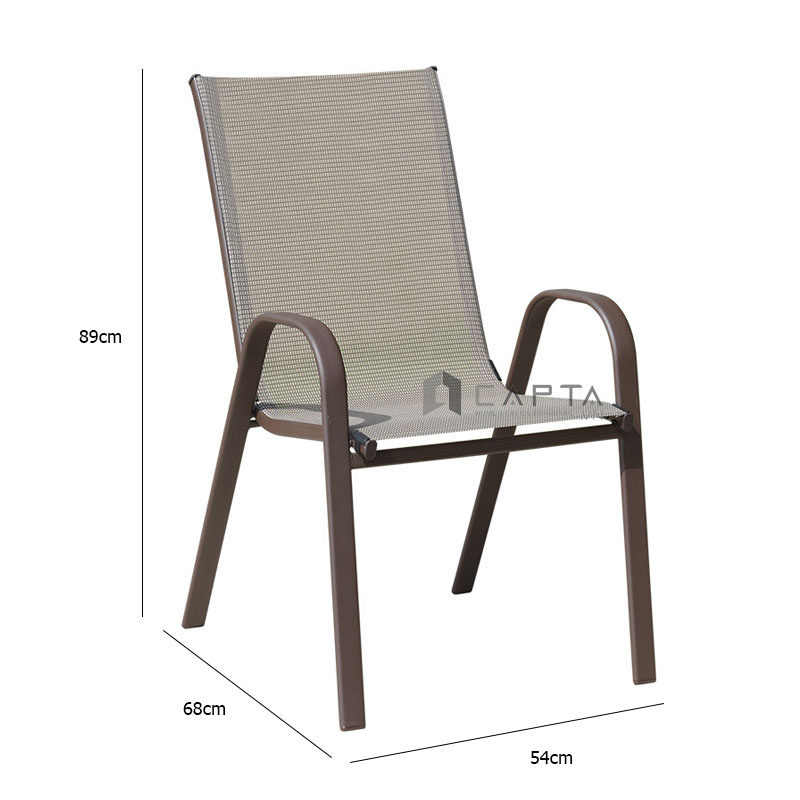- Kích thước ghế: 540680890 mm Bộ bàn mặt kính 4 ghế lưới dành cho sân vườn Bộ bàn ghế sử dụng chất liệu chuyên dụng ngoài trời. Phù hợp bộ bàn cafe sân vườn, bộ bàn cafe sân thượng, bộ bàn ăn ngoài sân,… Bộ bàn cafe 4 ghế lưới ngoài trời khung sắt bền đẹp phù hợp sử dụng sân vườn, hồ bơi, sân thượng,… Sản phẩm SL TE2020-06G / CC2033-T sử dụng chất liệu chuyên dụng ngoài trời, chịu được nắng mưa mà không cần lo ngại ảnh hưởng đến chất lượng sản phẩm. Sau đây là thông tin chi tiết bộ bàn ghế. Bàn cafe TE2020-06G nhỏ gọn, thiết kế đơn giản. Bàn khung sắt sơn tĩnh điện màu đen / nâu vững chắc. Mặt bàn kính cường lực 60 cm tạo chiều sâu không gian. Chất liệu kính và sắt sử dụng thoải mái môi trường ngoài trời mà không lo ngại gỉ sét. Bàn cafe ngoài trời mặt kính nhập khẩu TE2020-06G Ghế ngoài trời CC2033-T nệm vải lưới không trữ nước, thoáng khí, mau khô tăng độ bền. Khung sắt chắc chắn, ghế có tay tựa thoải mái. Ghế xếp chồng tiết kiệm diện tích khi không sử dụng. Lưng ghế nghiêng 120 độ tạo góc dựa lưng thư giãn. Ghế nệm lưới khung sắt chống rỉ CC2033-T xếp chồng