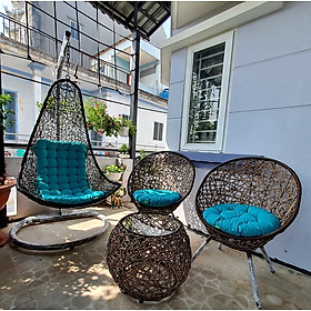 Bộ sản phẩm gồm : 01 bàn mặt kính + 02 ghế + 01 xích đu như hình