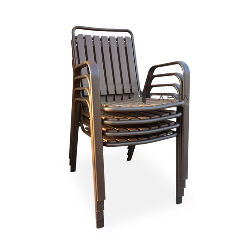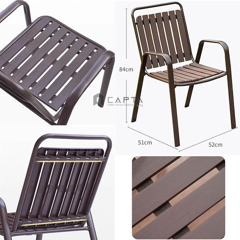Ghế cafe nhựa đúc caro chéo màu đồng CC2015-A Nội thất Capta Ghế ăn ngoài trời nhựa đúc màu đồng xếp chồng có tay tựa - Chất liệu: nhôm đúc sơn tĩnh điện màu đồng