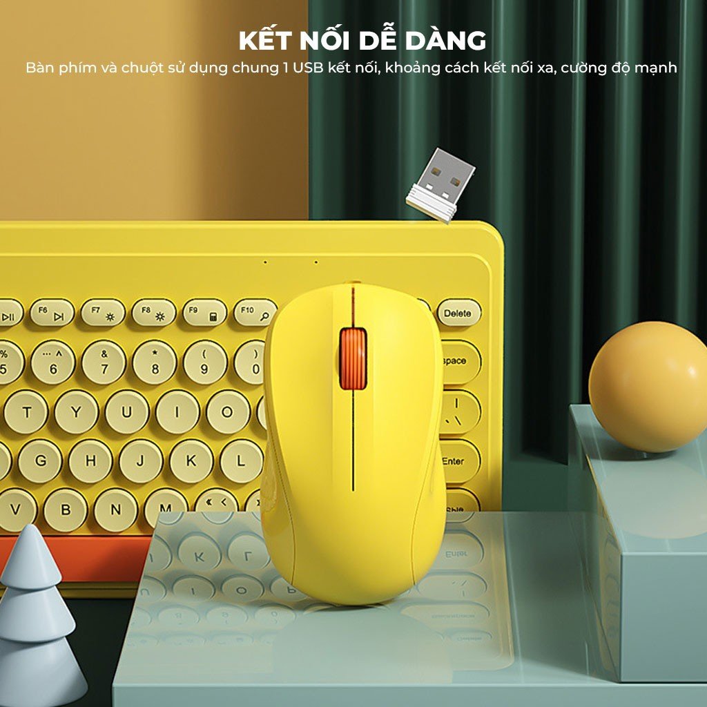 Bộ bàn phím và chuột không dây Siêu Xinh thời trang K68 màu vàng xanh sặc sỡ - XSMART