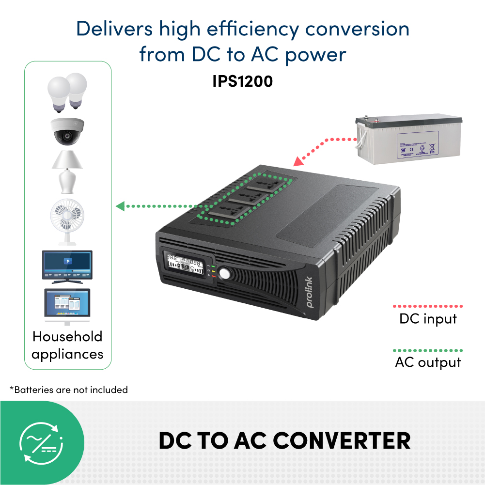 - IPS của Prolink là thiết bị lưu điện phù hợp cho hộ gia đình và hệ thống an ninh CCTV. IPS Prolink cung cấp nguồn điện xoay chiều cho các thiết bị điện, thiết bị lưu trữ trong thời gian mất điện, hỗ trợ ổn định điện áp.