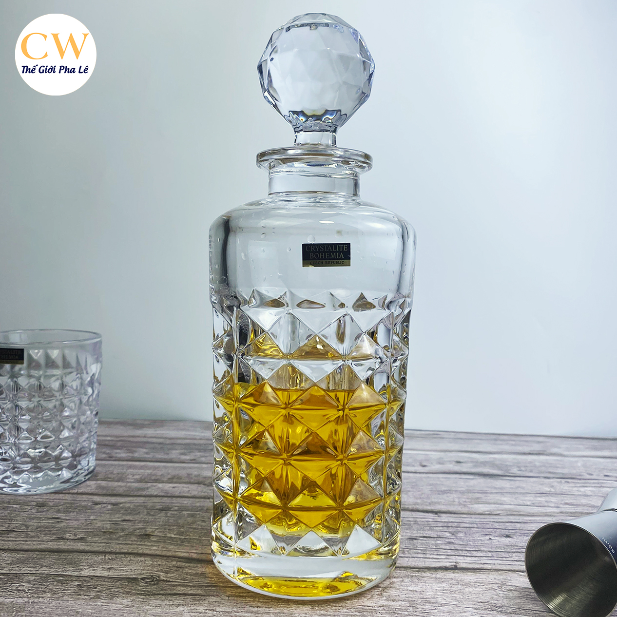 Bộ Bình Ly Rượu Mạnh Pha Lê Tiệp Bohemia Diamond (1 bình 6 cốc) sang trọng và đẳng cấp.