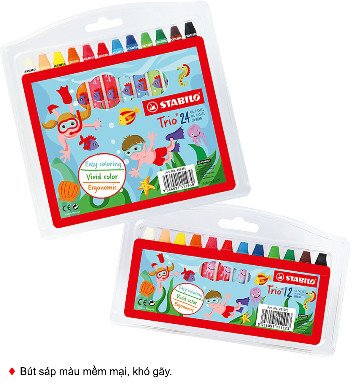 Bộ Bút Sáp Dầu Stabilo Trio OP2624 - Bút sáp dầu dành cho học sinh. - Có thể uốn cong và rơi không vỡ. - Không độc hại, an toàn theo tiêu chuẩn Châu Âu.