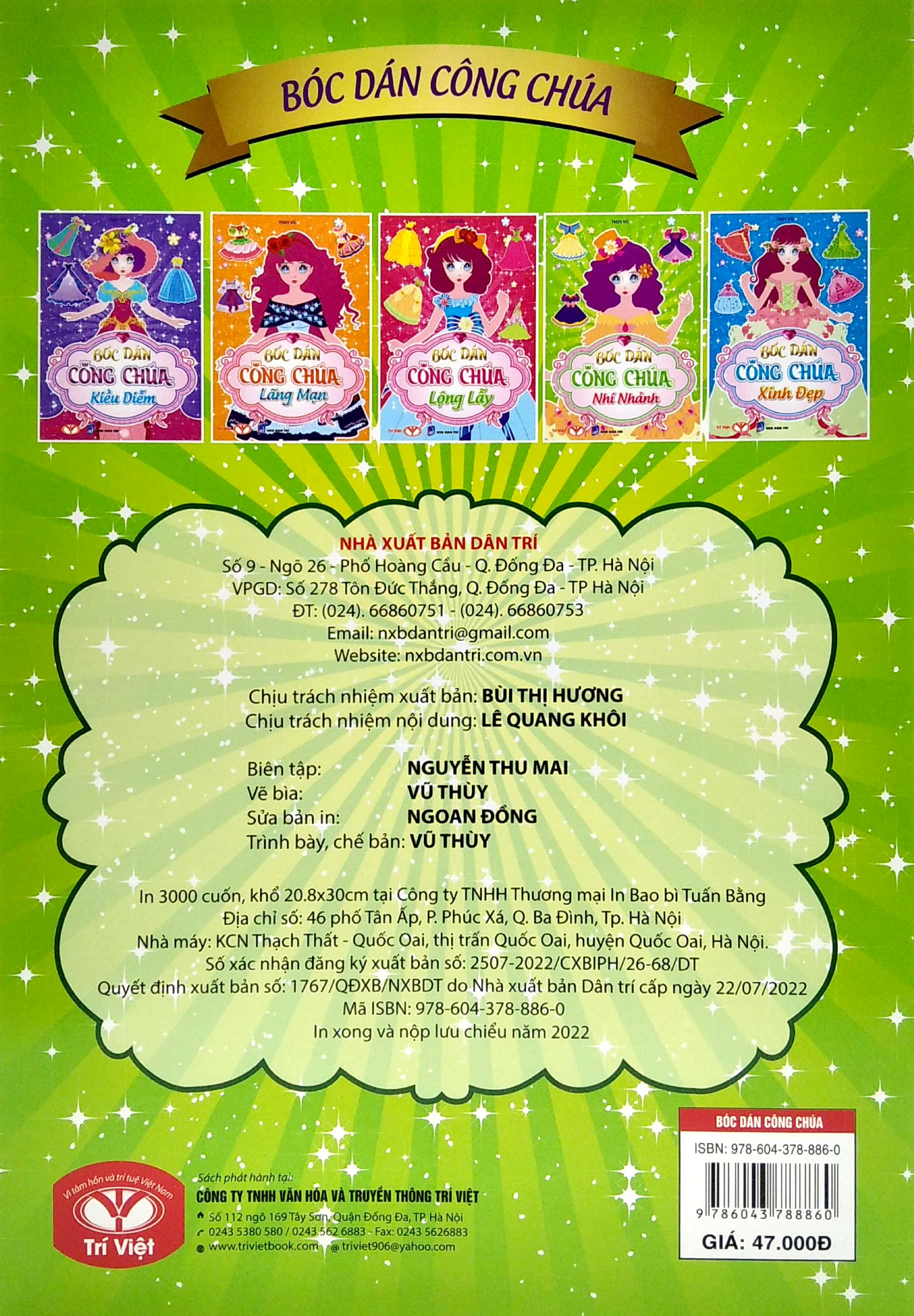 Bộ Bóc Dán Công Chúa giúp bé thỏa sức sáng tạo ra các tác phẩm tuyệt đẹp. Gồm 05 cuốn với các chủ đề: