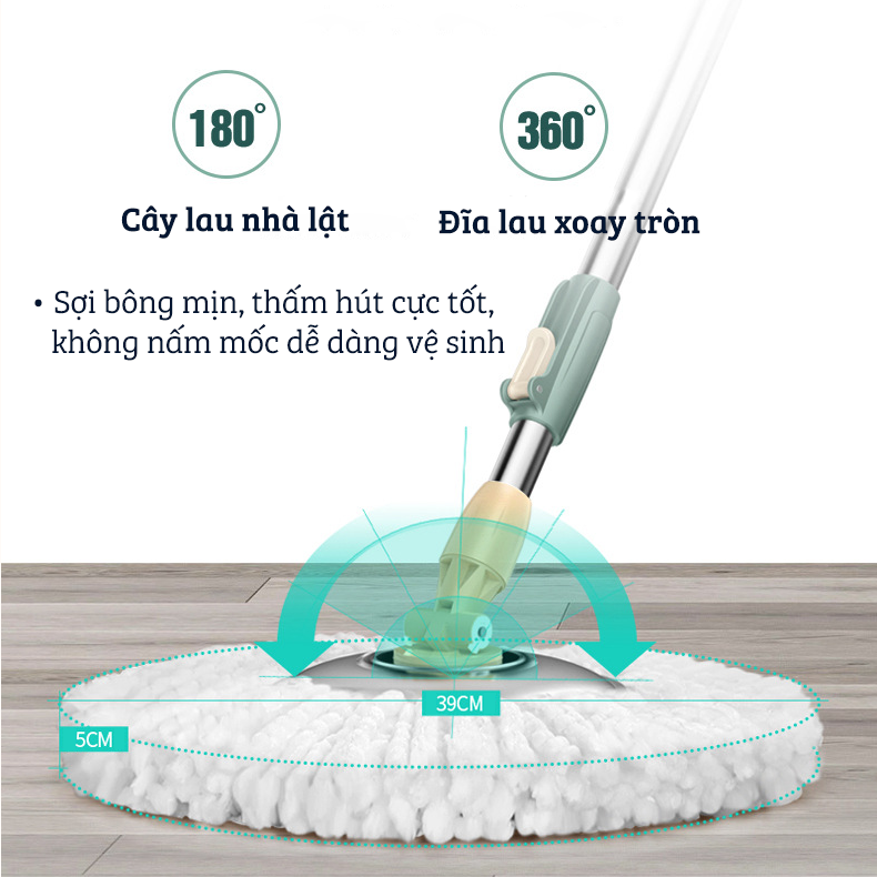 Bộ lau nhà tròn xoay 360 Coco 07 Tặng kèm 2 bông lau - Bộ lau nhà là vật dụng cần thiết cho mỗi gia đình. - Sản phẩm Bộ lau nhà xoay 360