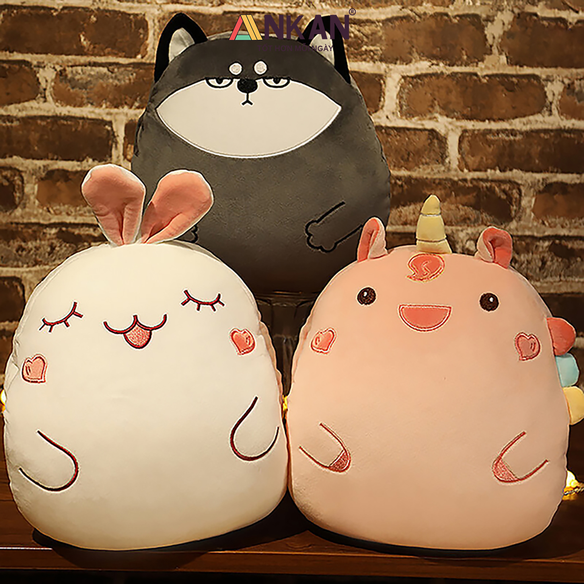 Bộ Chăn Gối Văn Phòng Đa Năng Hình Thú Gấu Bông Dễ Thương, Tiện Lợi Cho Bé Đi Học Và Du Lịch CHĂN GỐI VĂN PHÒNG ANKAN CÓ GÌ ĐẶC BIỆT Thiết kế hình thú xinh xắn, phù hợp làm quà sinh nhật, quà tặng bạn bè, người yêu, đồng nghiệp. Đa năng 3 trong 1: vừa là gối ôm – gối tựa lưng – gối luồn tay, kèm chăn êm giữ ấm. Sử dụng tiện lợi cho nhiều mục đích: ngủ trưa văn phòng, đi học, đi làm, du lịch. Trên sản phẩm có nhãn chữ “はい” (hai) – nghĩa là “Vâng” trong tiếng Việt, mang đến cảm giác dễ thương, tích cực và gần gũi theo phong cách Nhật Bản. CAM KẾT TỪ ANKAN Sản phẩm đúng mô tả, đúng mẫu, đúng kích thước. Đổi trả trong 15 ngày nếu khách không hài lòng. Hoàn tiền 100% nếu sản phẩm lỗi do nhà sản xuất. Đóng gói sạch sẽ, an toàn, giao hàng nhanh chóng. THÔNG SỐ KỸ THUẬT Kích thước gối: 40 x 35 cm. Kích thước chăn: 100 x 170 cm (được lồng gọn trong gối). Chất liệu vỏ: vải nhung siêu mềm. Chất liệu ruột: bông PP cao cấp, an toàn cho da. Trọng lượng: khoảng 800g. Có 4 kiểu dáng để bạn lựa chọn là Cáo Đỏ, Cá Voi Xanh, Cừu Trắng và Gấu Nhật Bản ƯU ĐIỂM NỔI BẬT Vải nhung mềm mịn, thoáng khí, dễ giặt sạch.
