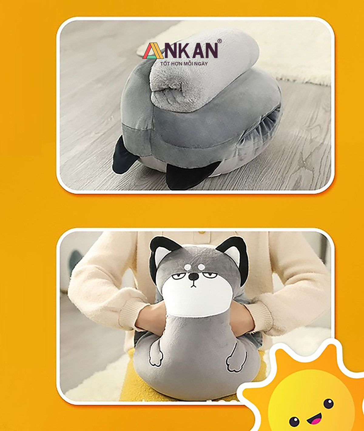 ✨Bộ Chăn Gối Văn Phòng 3 Trong 1 Kiểu Chó Husky Mặt Cộc - Siêu Dễ Thương Dùng Để Giữ Ấm Tay Có Chăn Đắp Và Gối Kê Đầu Vô Cùng Tiện Lợi