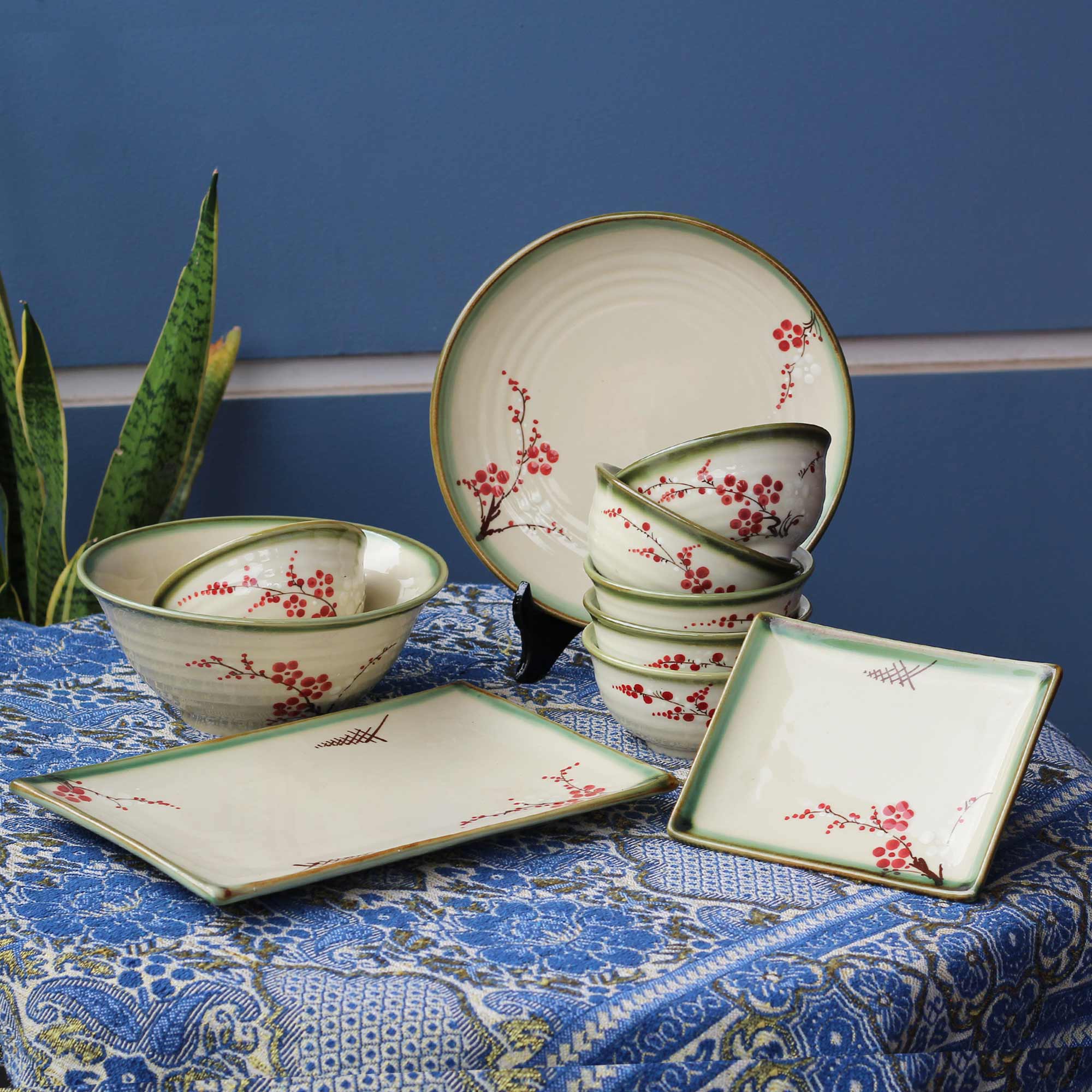 Bộ tô chén đĩa ăn gốm Bát Tràng men hoa đào là một trong những sản phẩm được yêu chuộng vì nét vẽ tỉ mĩ, tinh tế và mang phong cách hoài cổ xen lẫn, góp phần làm cho món ăn thật ngon hơn và buổi cơm gia đình ấm cúng hơn với bộ chén đĩa gốm.