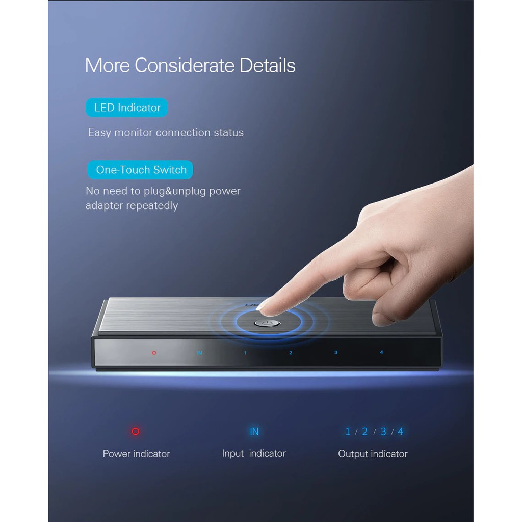 - Ugreen 40202 chia từ 1 cổng HDMI ra 4 cổng HDMI khác đầu ra Full HD 1080p cho độ nét cao.