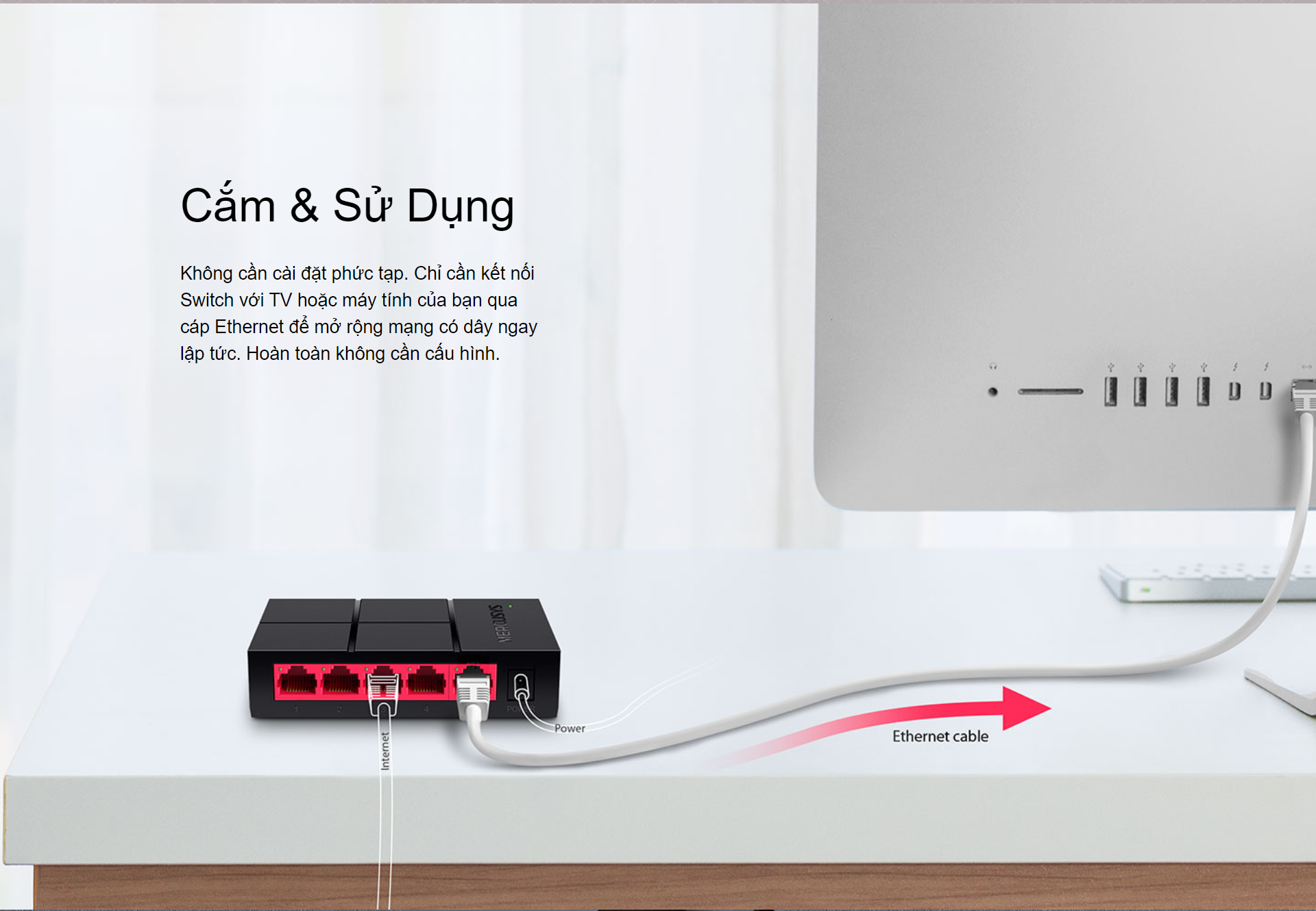 Bộ Chia Mạng 8 Cổng Gigabit MERCUSYS MS108G - Switch 10/100/1000Mbps _________________________________________________________ - Tám cổng RJ4510/100/1,000 Mbps tự động đàm phán, tự động hỗ trợ MDI / MDIX - Mở rộng kết nối có dây